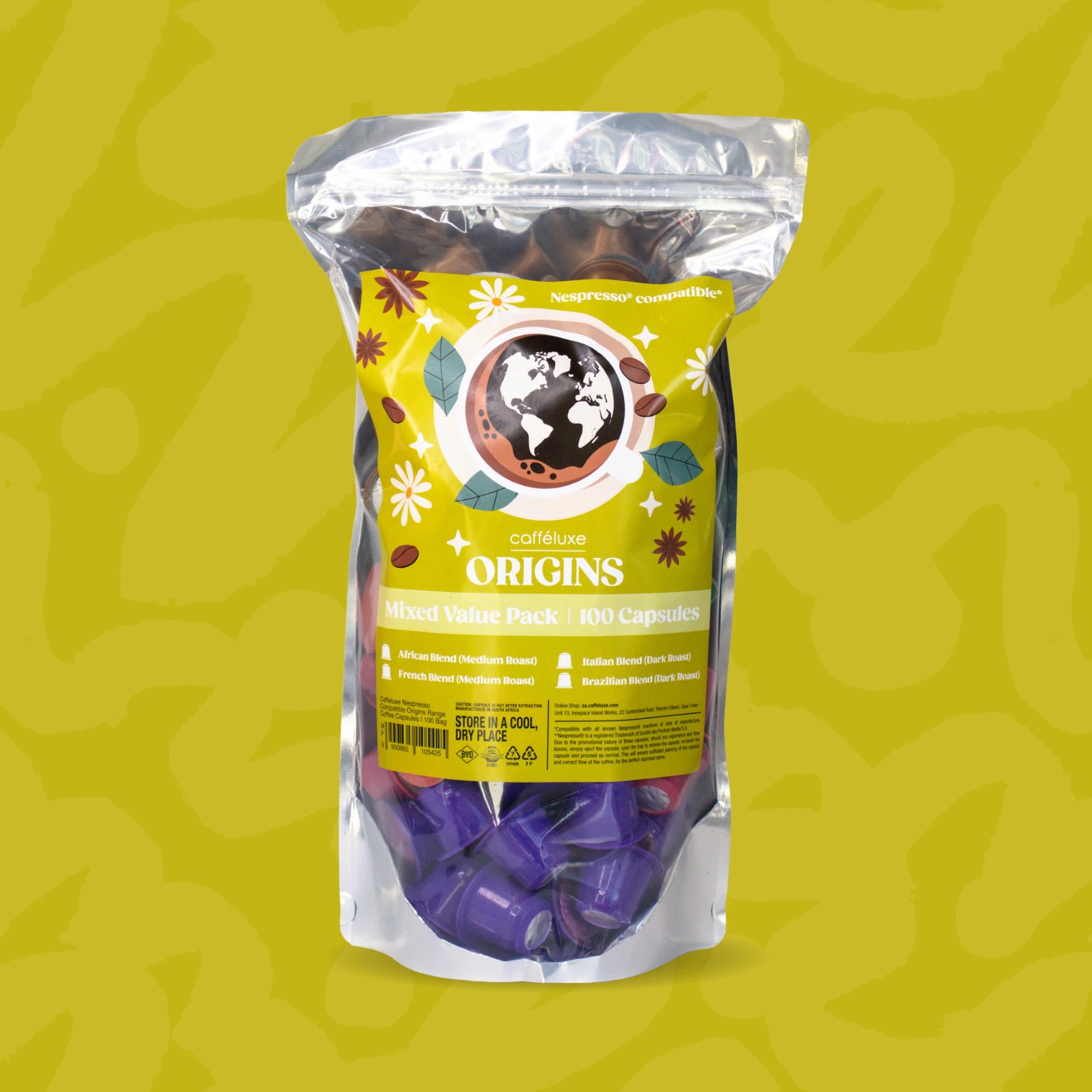 Caffeluxe Origins Mixed Variety | 100 Coffee Capsules | Nespresso® Compatible
