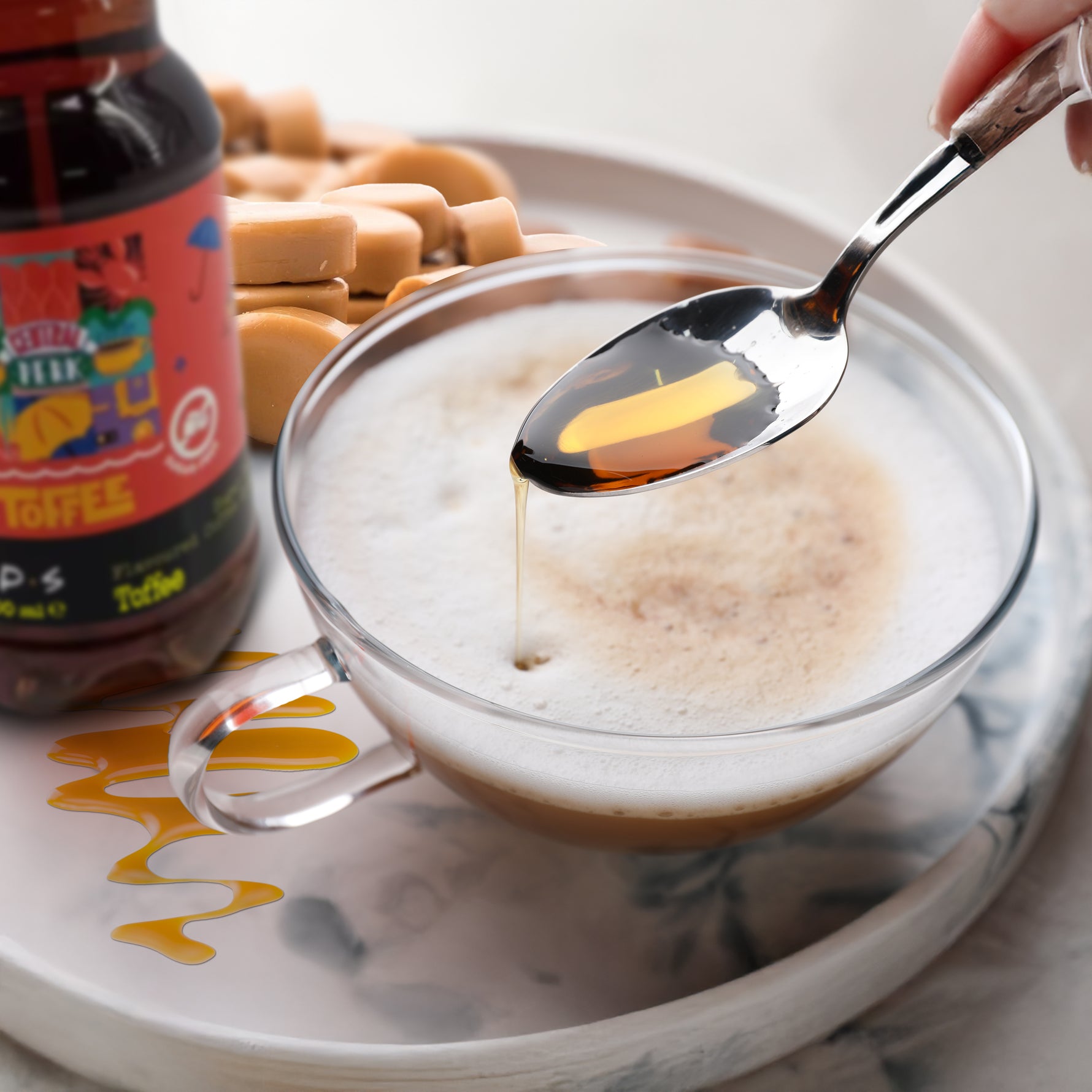 Bring the cozy vibes of Central Perk to your cup with Friends Toffee Syrup! This sugar-free, 1L flavoured coffee syrup delivers a rich, warm sweetness inspired by NYC's charm. Perfect for your coffee moments! ☕✨